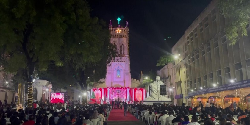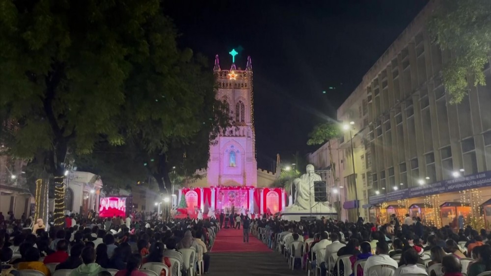 Worshippers in the Indian city Hyerabad celebrated Christmas by attending an outdoor midnight Mass on Saturday.