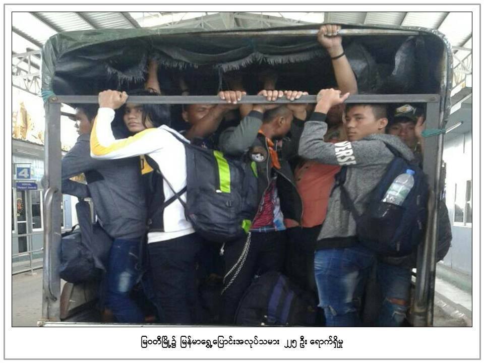 Myanmar migrant workers continue to return home from Thailand. 225 migrant workers (153 men and 72 women) returned home on Sunday through Myawaddy of Kayin State.