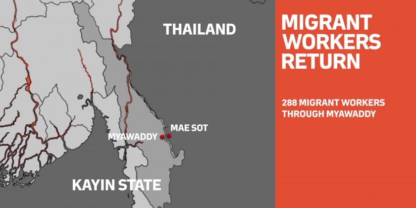 Myanmar migrant workers continue to return home from Thailand. 288 migrant workers (228 men and 60 women) returned home on Tuesday through Myawaddy of Kayin State.
