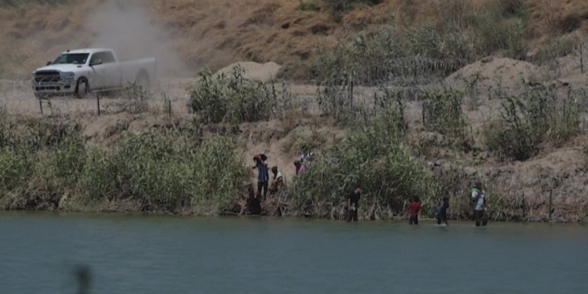 Migrants attempt to cross on Mexico-US border near buoys