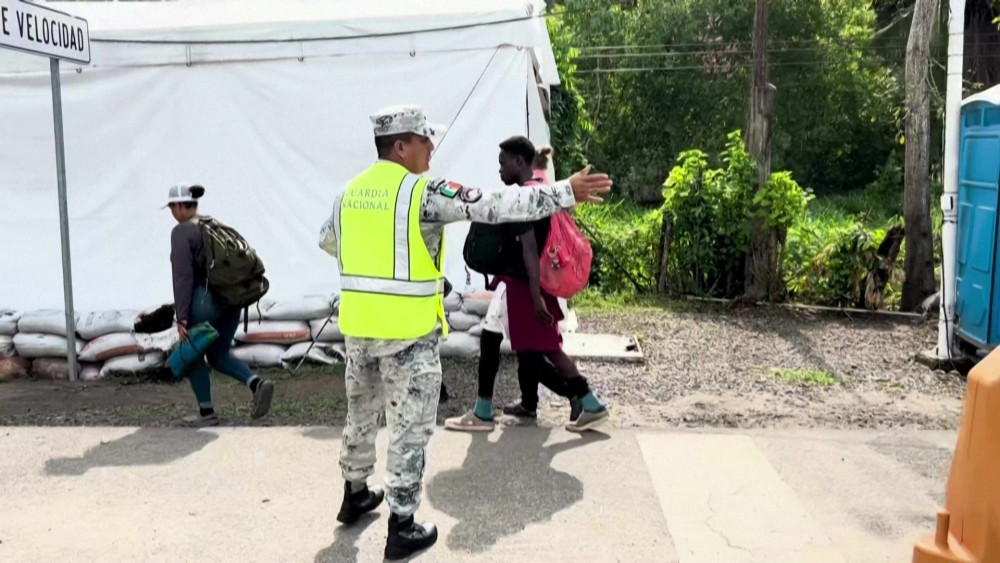 Dozens of migrants set up camp in Brisas Barra de Suchiate, in southern Mexico, after crossing into the country from Guatemala, as they wait to continue their journeys to the United States. Meanwhile, in the capital city, the Mexican and Guatemalan presidents meet to discuss the issue of migration. Many thousands of migrants fleeing violence and poverty cross Mexico every year, heading for the US border.