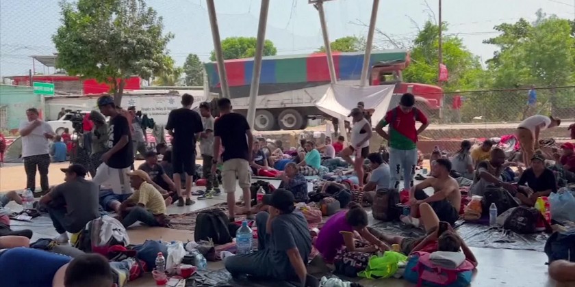 Seven of the migrants and activists accompanying them on Tuesday sewed their lips shut in protest over the lack of a government response to their request for dialogue. The migrants walked to the town of Huixtla, some 25 miles from Tapachula where they started their walk Sunday.