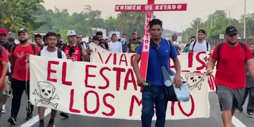 Several thousand migrants are walking north from near the Guatemalan border in protest of a deadly fire that killed 40 at a border detention center last month and calling for Mexico to close its detention centers.