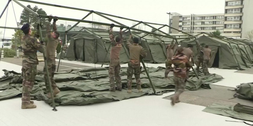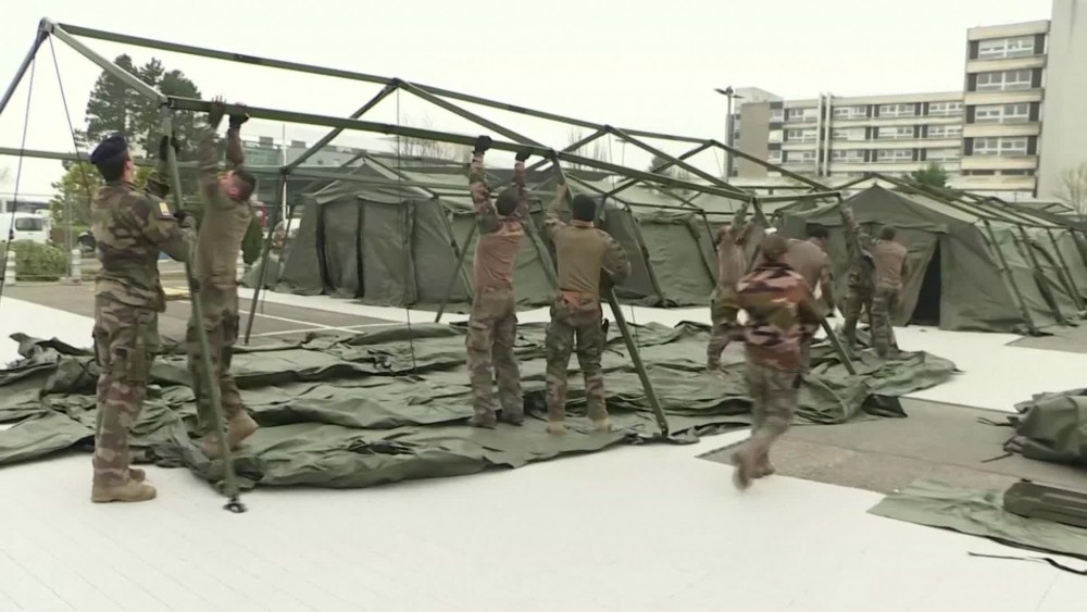 The French army were setting up a field hospital in the city of Mulhouse in eastern France on Saturday with 30 intensive care units. That setting aims to ease the strain on hospitals in the east of the country that are struggling to cope with the spiraling number of cases.