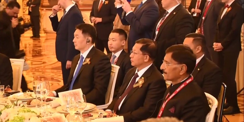 Afterwards, Prime Minister Senior General Min Aung Hlaing, together with the world leaders, proceeded to the Tomb of Unknown Soldiers, waving to the attendees of the Victory Day Military Parade. They then laid wreaths at the tomb.