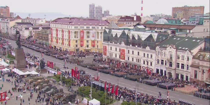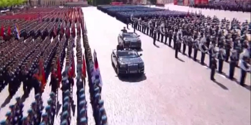 The ceremony commenced at 10:00 a.m. local time with the sounding of the alarm from the Clock Tower of the Kremlin Palace. This was followed by saluting the national flag of Russia and the commemorative flag for Victory Day. Russian Minister of Defence Mr. Andrei Ramovich Belousov then received the salute and inspected the military columns.