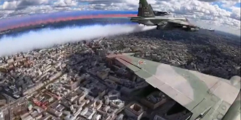 The military column led by the Commander-in-Chief of Russian Ground Forces marched-past the Supreme Commander-in-Chief followed by the Armored Units, Artillery, Air Defense Force, Strategic Missile Forces, and other Mechanized Forces while the Air Force flew in formation.