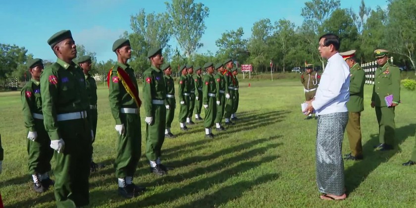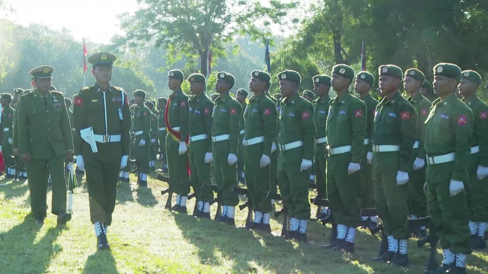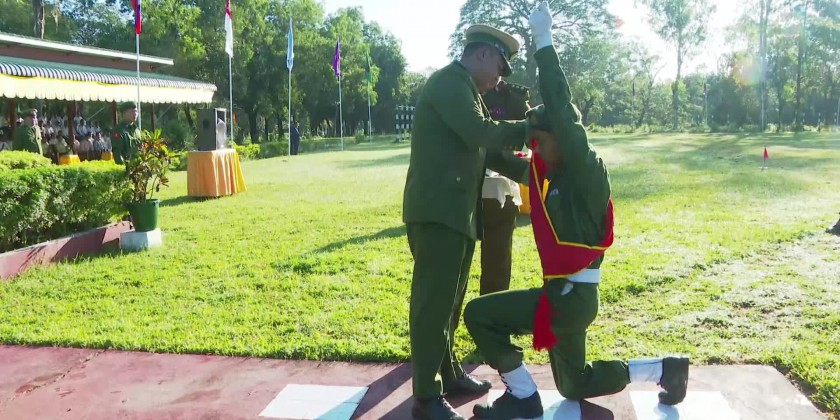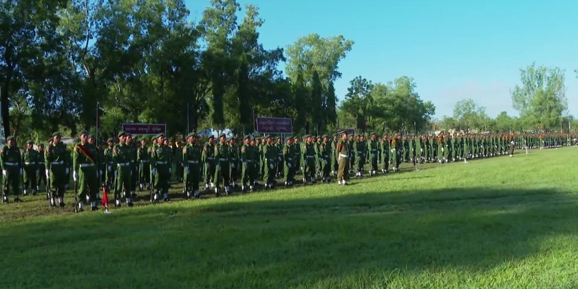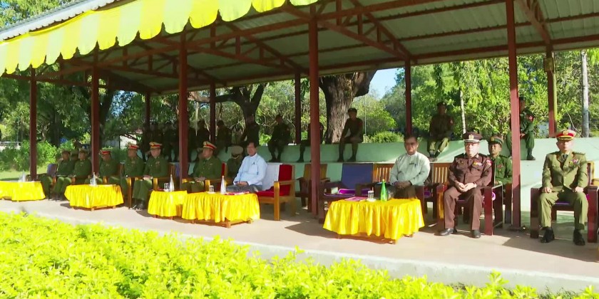 The passing out parade of People's Military Service Training batch 4/2024 took place at No. 1 Basic Military Training School in Min Kone village of Hlegu Township, Yangon on Friday with the attendance of the Yangon Region Chief Minister U Soe Thein and region ministers, Deputy Commander of Yangon Command Brigadier General Tun Tun Oo, Acting Commandant of local military training school, senior military officials and many other concerned officials. First Acting Commandant and trainees paid their salutes to the National Flag.
