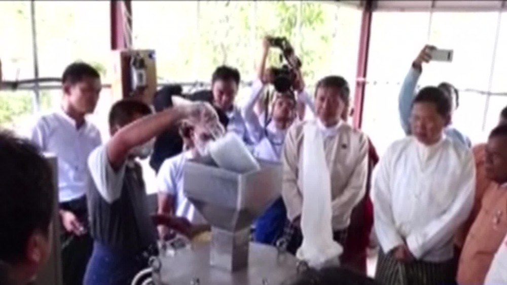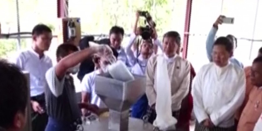 They observed the soy bean grinding mill donated to the Shwe Parami Soy Milk Nutrition Foundation - soy bean production process was explained. Marking the programme launching, the union ministers and officials planted bamboo saplings. In his address, Union Minister Dr. Myo Thein Gyi stressed milk is a key part of a healthy diet for kids.