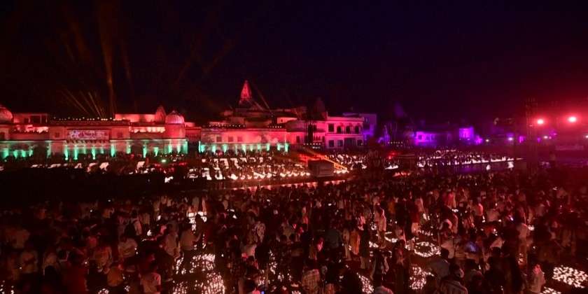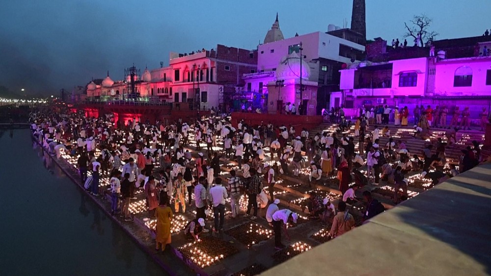 The spectacle, featuring a dazzling light and fireworks show, draws thousands to the north Indian temple town, believed to be the birthplace of Lord Ram, whose return from 14 years of exile is celebrated as Diwali — the festival of lights.