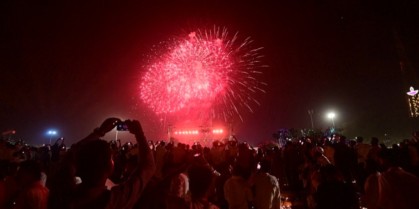 Ayodhya in India glows with more than 2.6 million earthen lamps on the eve of Diwali on Sunday, setting two Guinness World Records during the Deepotsav festival on the banks of the Saryu River.