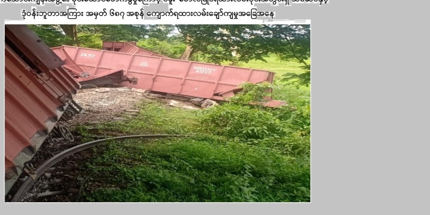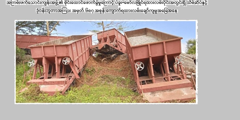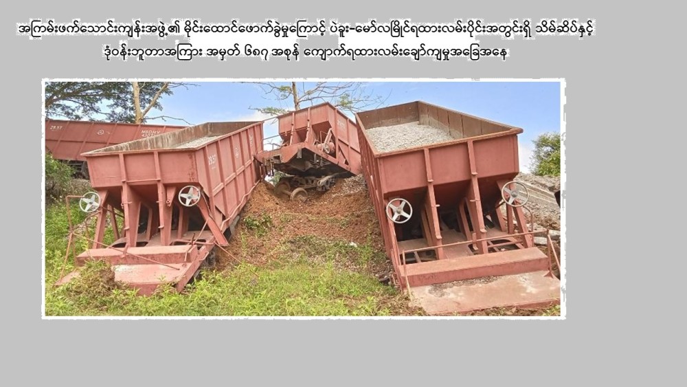 The PDF terrorists blasted a cargo train on Bago-Mawlamyine rail section on Sunday. No.687 Up-train, carrying gravel along Thae Phyu Kone-Kali route, was blasted at around 8:45 am when it reached between Thein Seik and Donwun Stations.