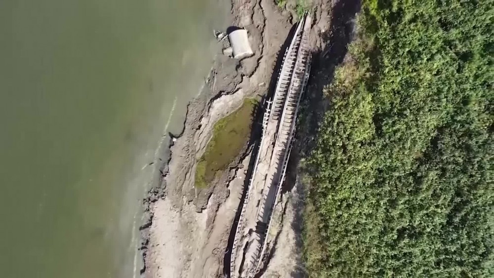 A shipwreck has emerged along the banks of the Mississippi River in Baton Rouge, Louisiana, as water levels plummet threatening to reach record lows in some areas.