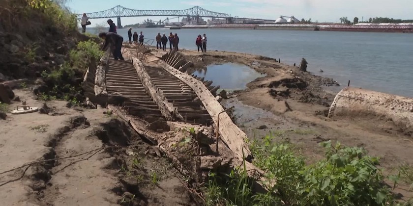 The ship, which archaeologists believe to be a ferry that sunk in the late 1800s to early 1900s, was spotted by a Baton Rouge resident walking along the shore earlier this month.