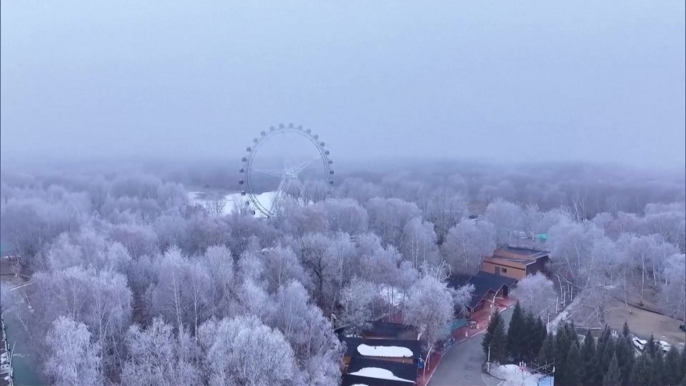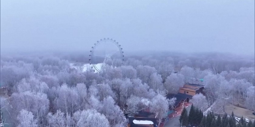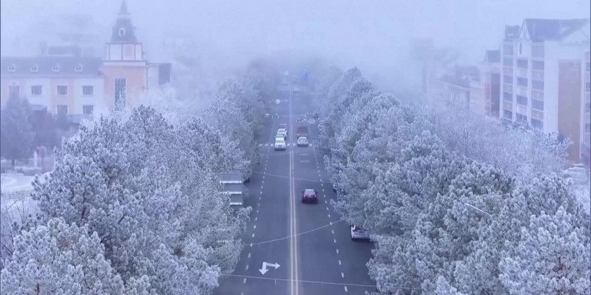 Recent mist has wrapped a town of Habahe County in northwest China, creating a poetic, fairyland-like scene. The mist blanketed the landscape, where buildings, streets, and trees appeared as faint silhouettes in the lingering moisture, lending the air a fresh, damp quality — an ethereal scene unfolding like a traditional Chinese ink painting.