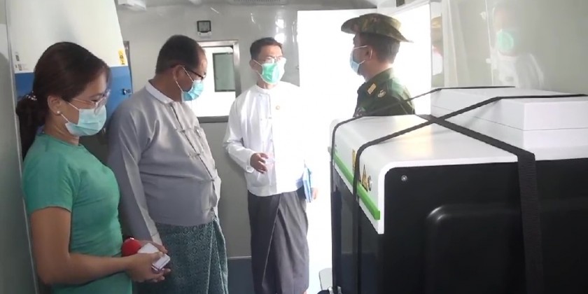 Rakhine State Chief Minister Dr Aung Kyaw Min, together with officials, visited 500-bedded General Hospital in Sittwe on Saturday. They inspected the mobile laboratory vehicle to be used for testing COVID-19 disease at Maungtaw District People’s Hospital.