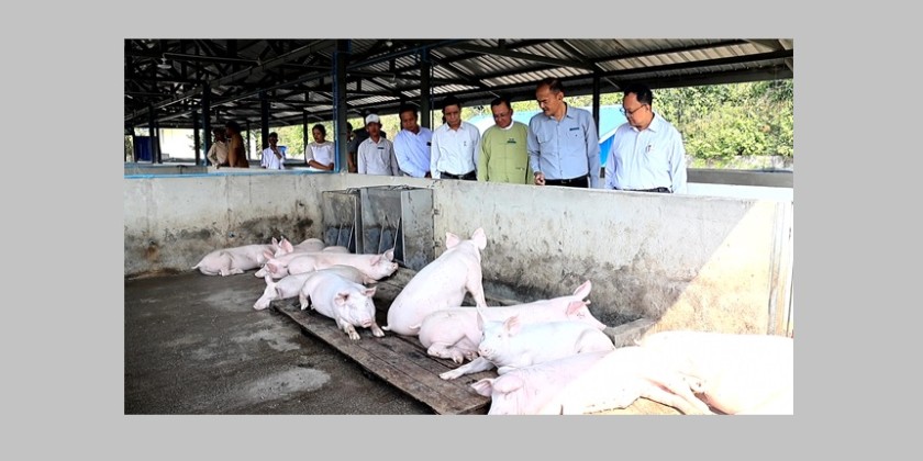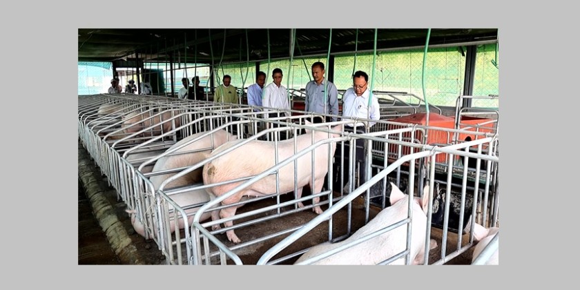 First, the Chief Minister and officials arrived at the Model Pig Farm, established to develop the state’s livestock sector and serve as a demonstration center for local breeders. The Head of the State Livestock and Veterinary Department explained the current status of breeding meat-producing pigs and pedigree pigs. After touring the facilities, the Chief Minister provided necessary instructions for the farm’s operations.