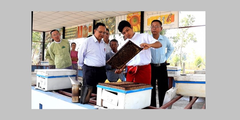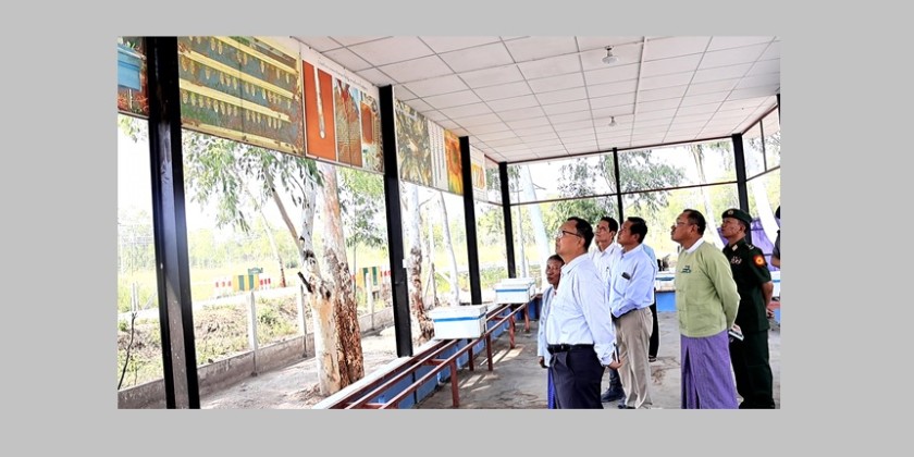 He then proceeded to the Queen Bee Breeding Station of the Beekeeping Sub-department in Yay Ni Kan Village. After inspecting the hives, he instructed officials to carry out educational activities regarding beekeeping, ensure seasonal crop cultivation to provide sufficient forage for the bees, and work toward the continuous increase and improvement of honey production, it’s reported.