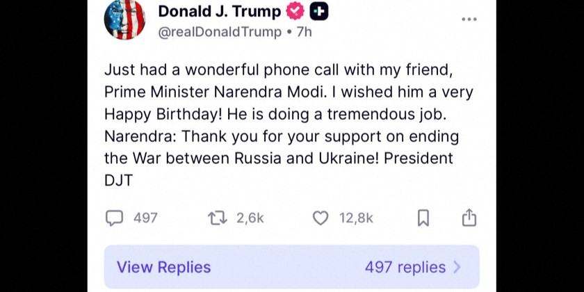 "Thank you for his support on ending the War between Russia and Ukraine!" Trump said in a post on Truth Social, describing his call with Modi as "wonderful" and praising India's leader for doing a "tremendous job." Modi, posting on X, thanked Trump for his greetings, said he was determined to take bilateral ties to "new heights" and supports Trump's efforts towards a "peaceful resolution of the Ukraine conflict."