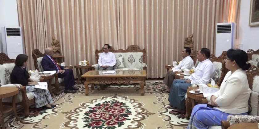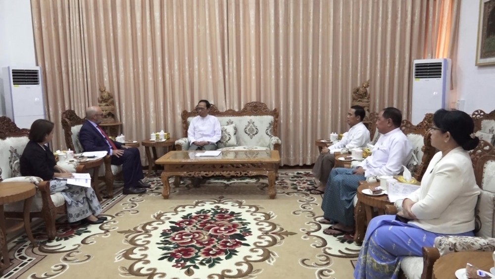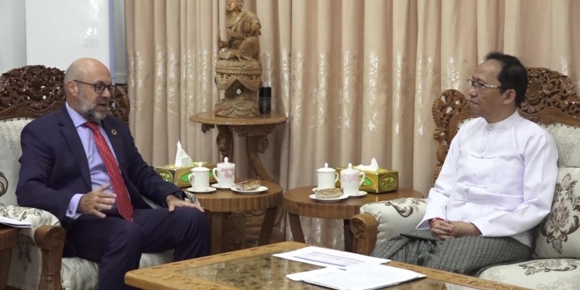 Union Minister for Health Dr. Thet Khaing Win met with Mr. Jaime Nadal Roig, the Resident Representative of the United Nations Population Fund (UNFPA) in Myanmar at the reception hall of the Union Minister's Office in Nay Pyi Taw on August 25.