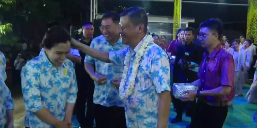 They joyfully participated in the New Year Thingyan Festival in accordance with Myanmar traditional cultural heritage. Afterwards, at 6:30 PM, the closing ceremony of the Ministry of Home Affairs Family Maha Thingyan Festival was held at the ministry's water-play pandal.