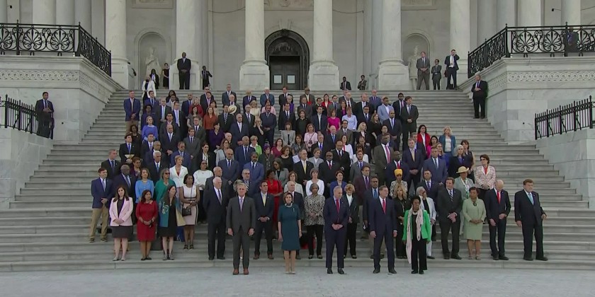 A bipartisan group of congressional leaders held a moment of silence Monday evening on the steps of the U.S. Capitol to remember and honor the estimated 600,000 American lives lost to the coronavirus pandemic.