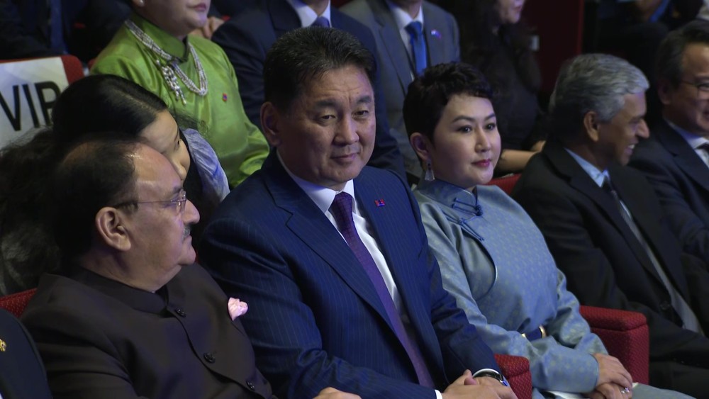 During his state visit to the Republic of India, Mongolian President Ukhnaagiin Khurelsukh attended a cultural event highlighting Mongolia’s rich artistic heritage. Artists from the National Theater of Fine Arts presented their performance “Beautiful Mongolia” for the first time at the Bharat Mandapam Complex in New Delhi.