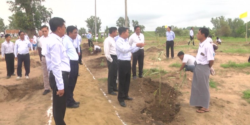 At the ceremony, Union Minister, Deputy Minister and attendees planted teak, Iron-wood, Mahogany, Tamalan and bamboo trees. And the Union Minister inspected tree plantation of local bamboo growers.