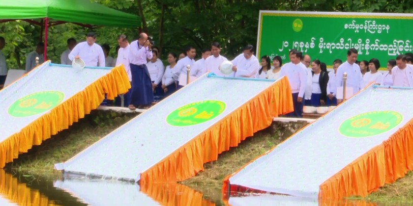 The Ministry of Industry held its 2025 Monsoon Season Fish Stocking Ceremony to increase fish resources at the Check Dam within the compound of Office No. 30, Ministry of Industry in Nay Pyi Taw on July 14.
