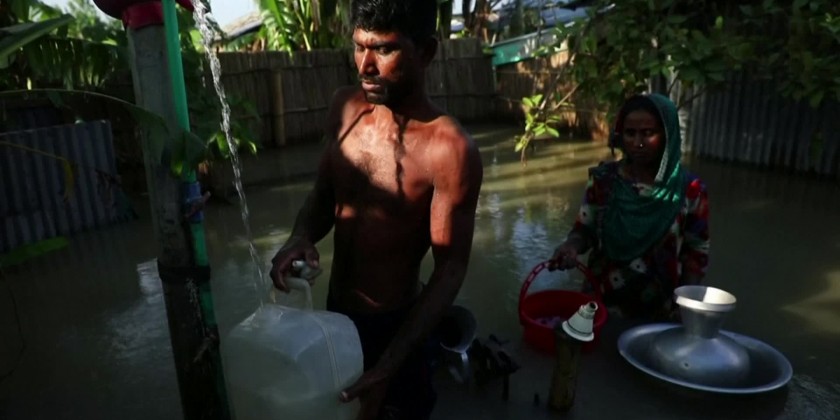 People in parts of Bangladesh hit by monsoon rain floods did their best to get on with life in villages as they waited for the water to recede.