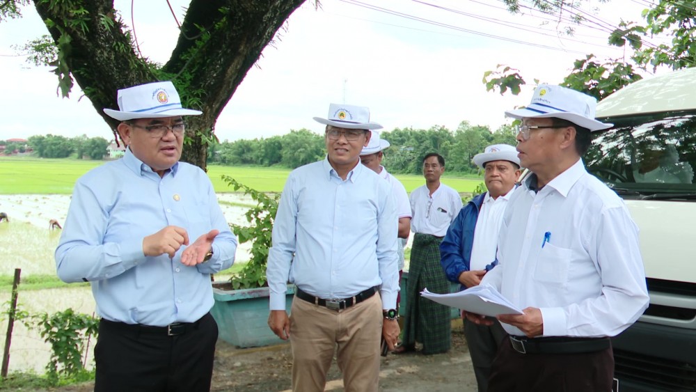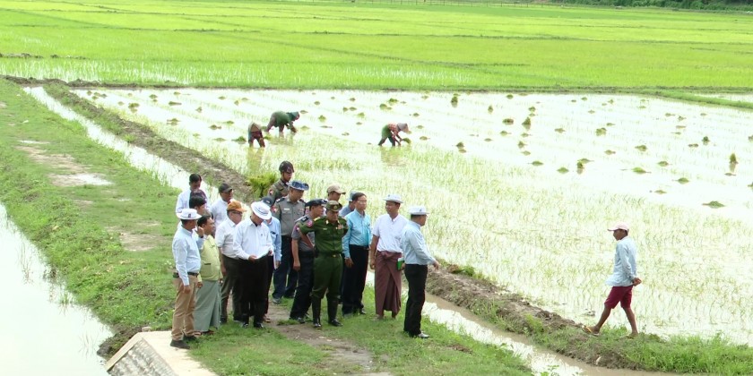 The State Chief Minister and party inspected Man Khein and Tetkone fields in Sat Mhu Ward and instructed to restore InJanKha Creek and wells using solar system with the State fund for sufficiency of agricultural water supply, to share knowledge for the farmers to be able to manage their own agricultural water supply, to take action in line with the law for encroachment of farmlands, to provide assistance for double cropping and coordinated the needs.