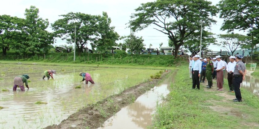 Kachin State Chief Minister U Khet Htain Nan together with officials made a field inspection of monsoon paddy fields in Myitkyina and Winemaw Townships on Thursday.