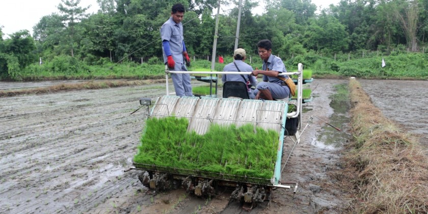 A pilot monsoon paddy cultivation by Rainbow Services Cooperatives Association is being carried out at 2.84 acres land plot in Nay Pyi Taw on Friday.