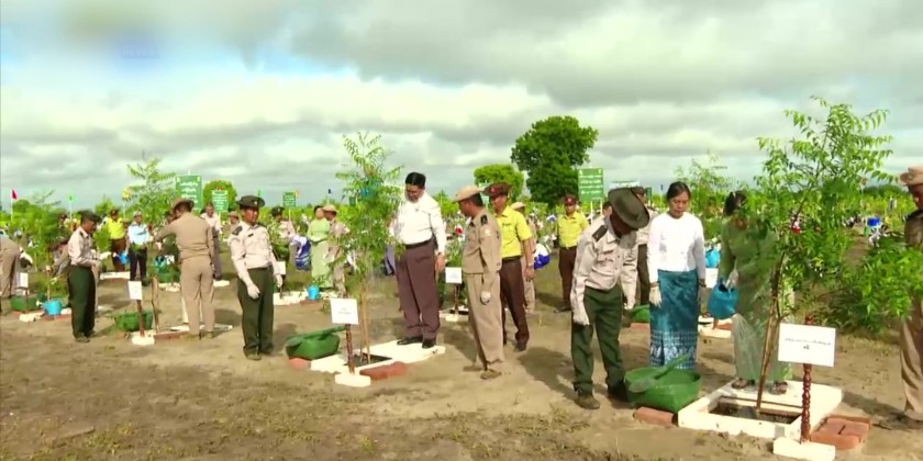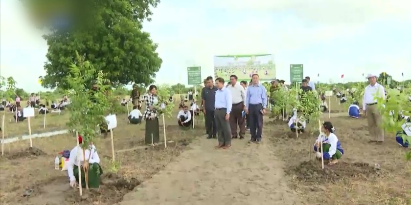 The second national level public movement tree-planting ceremony for 2025 was held in the morning on August 19, at Mileposts 4/7 to 5/0 along the Minbu–Padan–Ann road, in the tropical zone (13 districts) designated for greening in Minbu Township, Minbu District, Magway Region.
