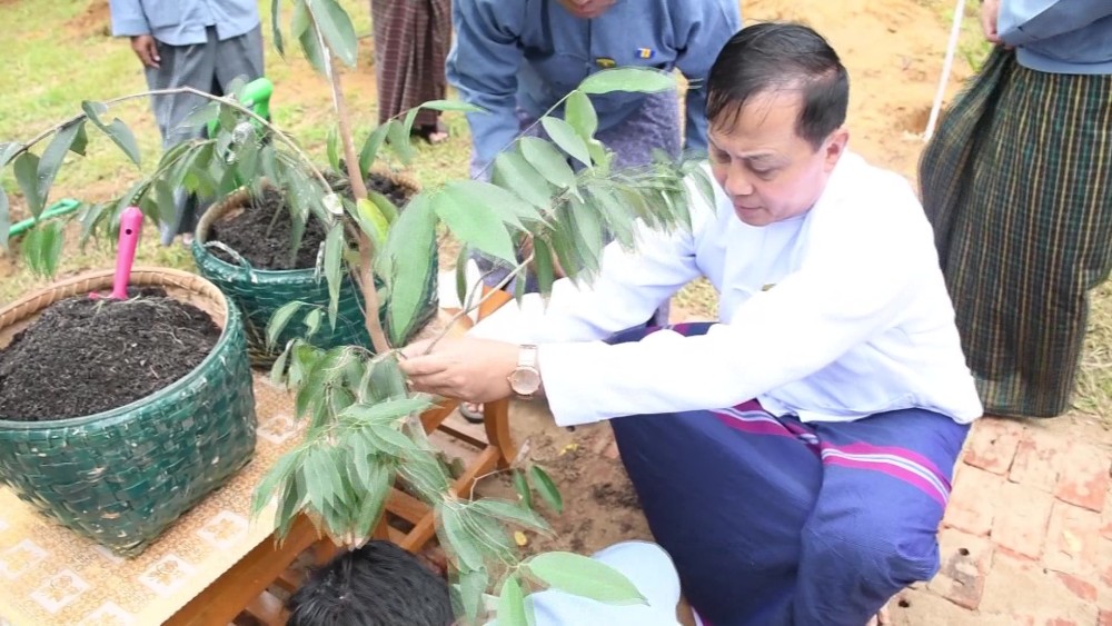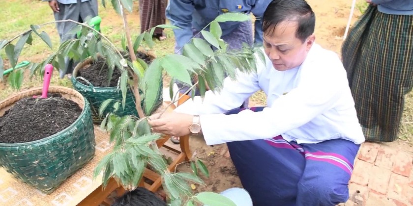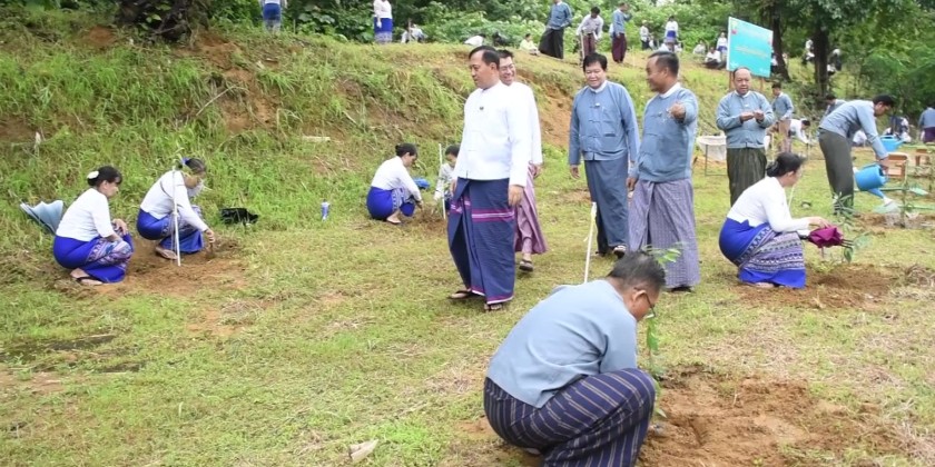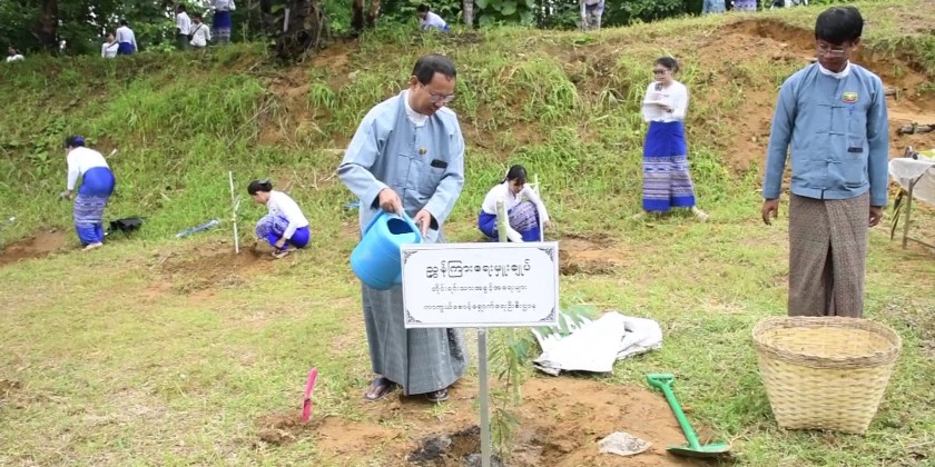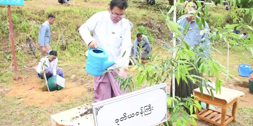 Union Minister Khun Thant Zaw Htoo attended the event together with the Deputy Minister U Zaw Aye Maung and many other concerned officials. First, the Union Minister and the Deputy Minister planted the saplings at the designated places followed by planting of saplings by concerned officials and staff at their respective areas.