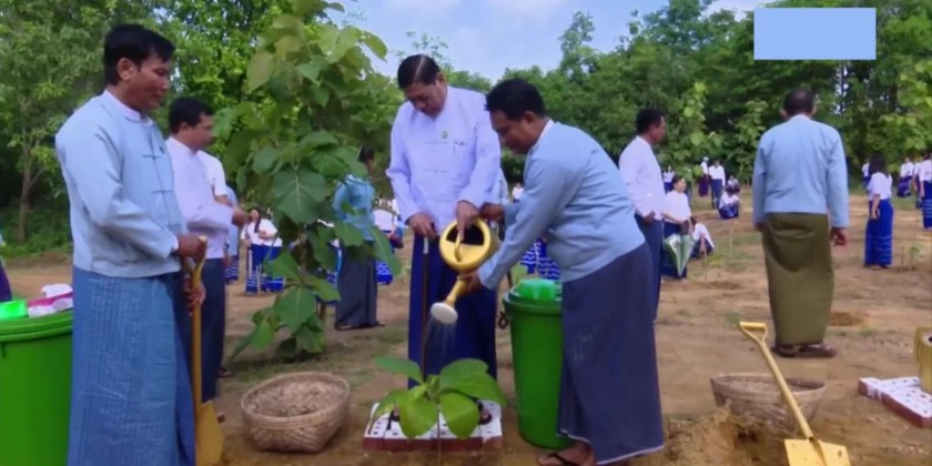 Union Minister for Industry Dr. Charlie Than attended a tree planting ceremony at the Ministry on Wednesday.