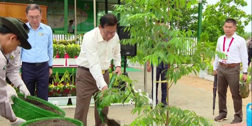 2025 Monsoon Tree Planting ceremony was held at the YanAungMyin Forest reserve in Dakkhinnathiri township, Nay Pyi Taw Union Terroritory on Sunday. At the ceremony, Chairman of the State Administration Council, Prime Minister, Senior General Min Aung Hlaing stressed the need to actively participate in the measures of greening environment, forest resources, ecosystem, preventing natural disasters, fair climatic condition and tree planting.