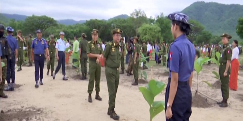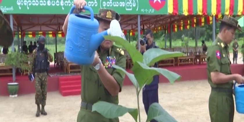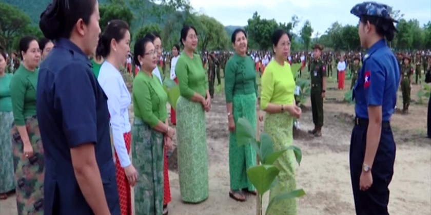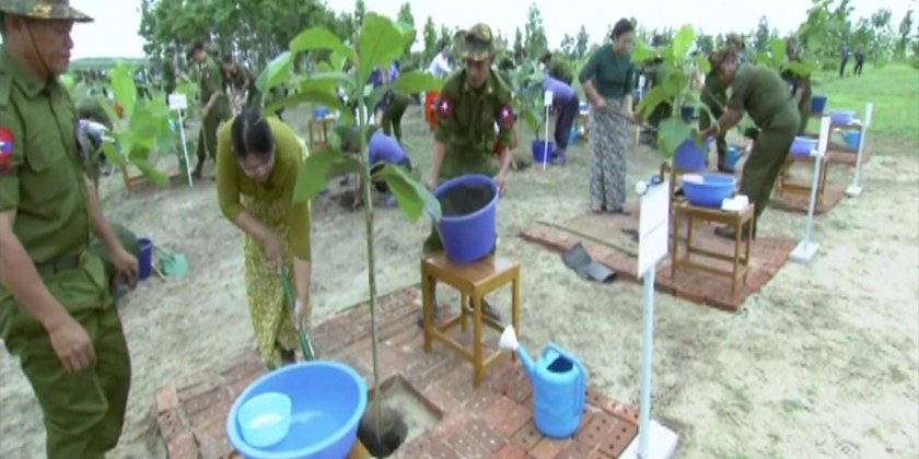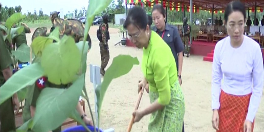 During the ceremony, the Senior General and wife planted teakwood sapling. Then, the senior military officers and their wives, military officers, Tatmadawmen and family members planted saplings at designated places.