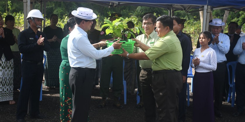 Chief Minister U Soe Thein and officials presented the saplings to the representatives from the concerned departments. The Chief Minister and party later planted teak saplings and also observed the planting of saplings by the officials and staff.