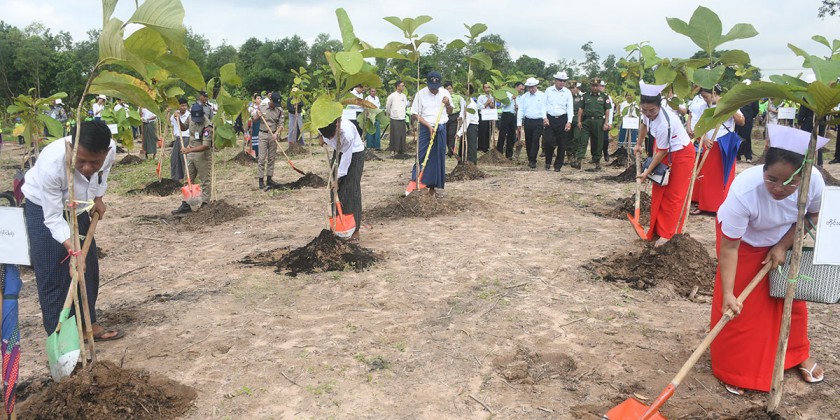 Yangon Region Government organized a monsoon tree planting ceremony at the Hlawga Catchment Area in Mingaladon Township on Friday.