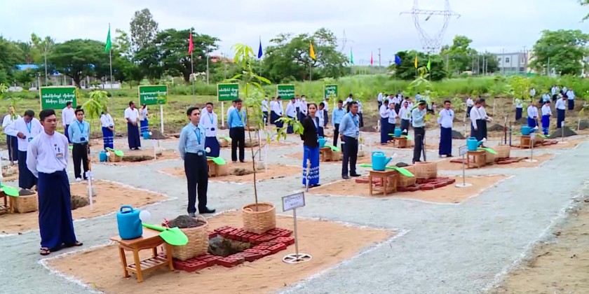 The ceremony was attended by Union Minister U Thaung Han, Directors-General of the Ministry, heads of the Departments, and staff. First, the Union Minister planted a Gantgaw sapling to mark the monsoon tree planting event. Then, the Union Minister observed the planting of 500 Sein Ta Lone saplings by the directors-general, directors, and heads of departments at their respective places.