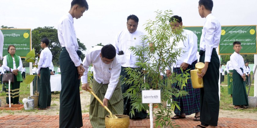 At the ceremony, the Union Minister planted Gantgaw sapling and the deputy minister, permanent secretary, directors-general, officials, teachers and students planted the saplings at the designated places respectively.