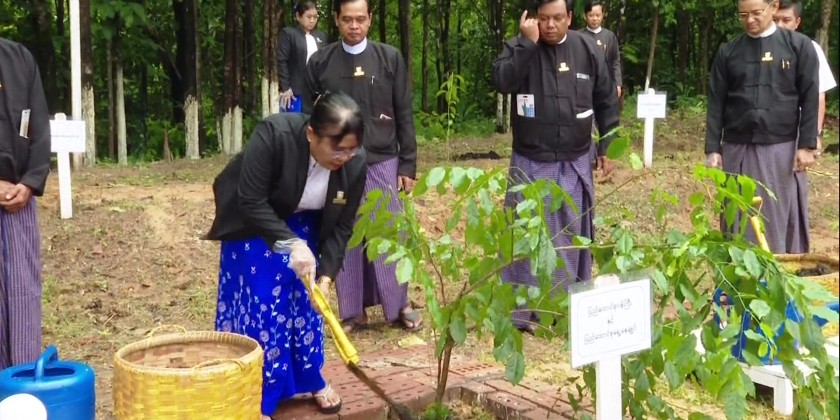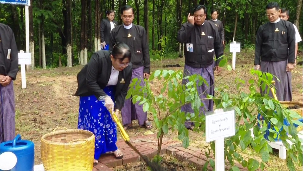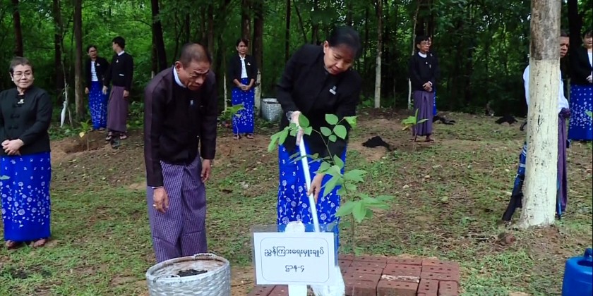 At the designated location, Union Minister and Union Attorney General Dr. Thida Oo planted a Padauk tree, while the Deputy Minister, Deputy Attorney General, and Director Generals planted Gantgaw trees. After the planting, the Union Minister and officials visited and encouraged officials and staff who were planting various tree species such as Gantgaw, Star-flower, eugenia, and Golden Shower in the designated areas. It was reported that a total of 140 shade trees were planted as part of this year's tree planting campaign by the Ministry of Legal Affairs.