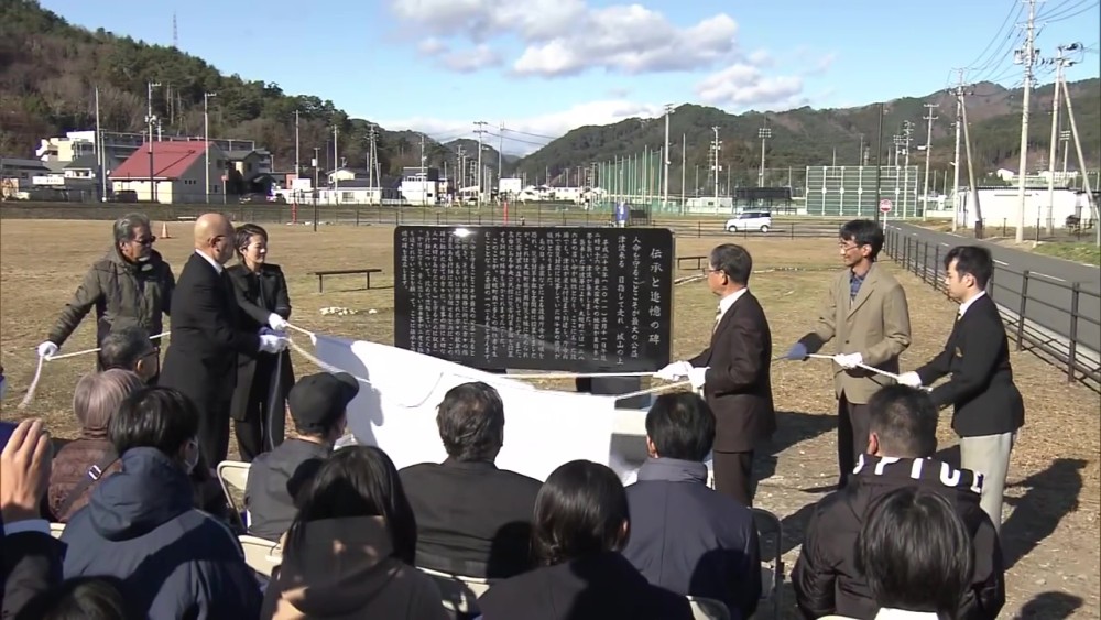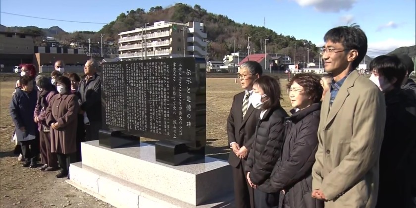 Forty town officials, including the then-mayor, lost their lives. About 50 people attended the ceremony in Iwate Prefecture’s Otsuchi Town on Sunday. Among them were family members of victims and local high school students who are engaged in activities aimed at passing on stories about the March 11, 2011 disaster. The monument is about 1.7 meters tall. It was erected where the tsunami-hit town hall stood before it was demolished in 2019.