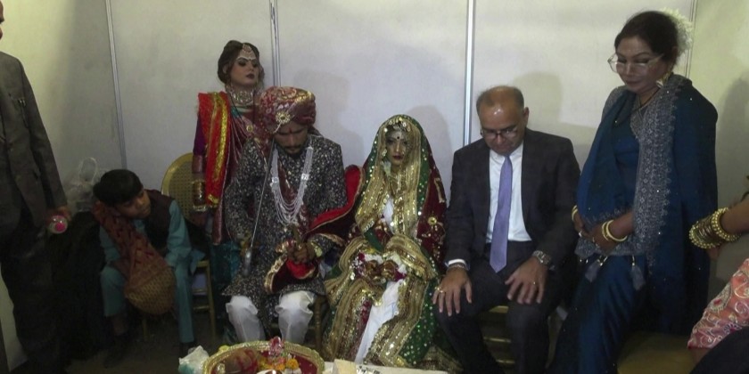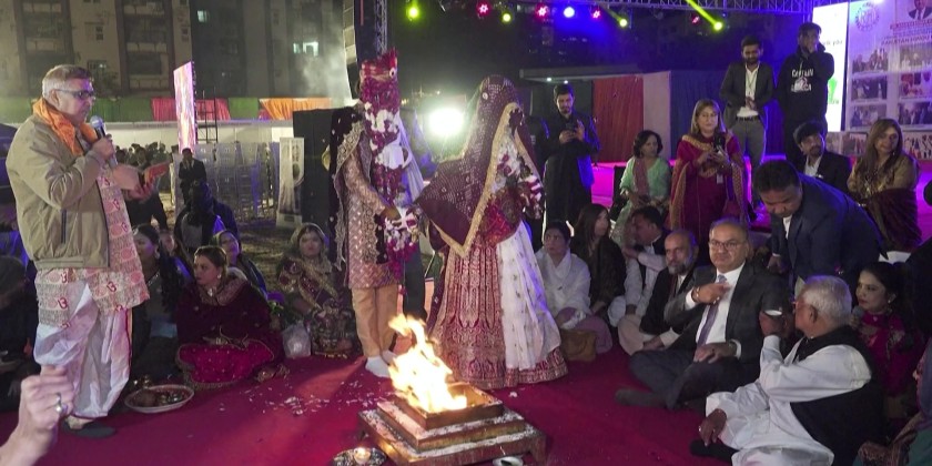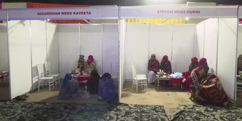 Couples dressed in colorful traditional clothes and performed their marriage rituals in individual mandaps set up across the venue. Family members and relatives attended, traveling from Karachi and interior parts of Sindh to celebrate the occasion.