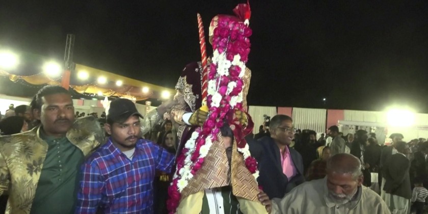 Seventy-five Hindu couples from across the country get married at a mass wedding ceremony at the Railway Ground in Pakistan’s city of Karachi. Organized by the Pakistan Hindu Council, which helps couples from low-income families.