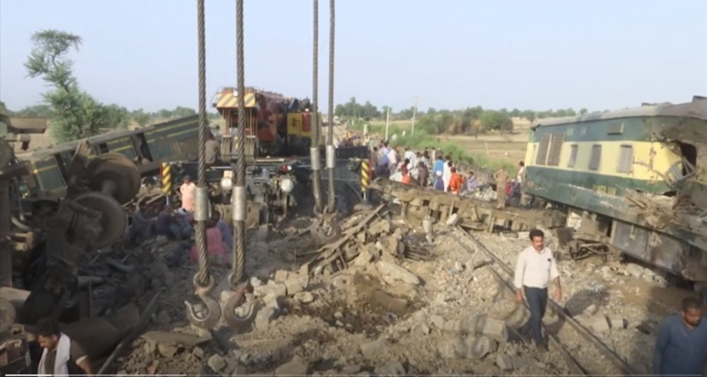Pakistani authorities on Tuesday continued clearing the site of a deadly train collision in which at least 51 people died. Heavy machinery removed crumpled carriages from the tracks as soldiers stood guard. The disaster happened on Monday in the southern province of Sindh when an express train hit another train that had derailed. More than 100 people were injured. Engineers and experts were trying to determine what caused the collision. About 1,100 passengers were aboard the two trains.