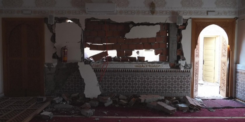 In the hardest-hit areas south of Marrakesh many villages in the High Atlas Mountains were completely destroyed and locals were taking shelter in yellow government-issued.