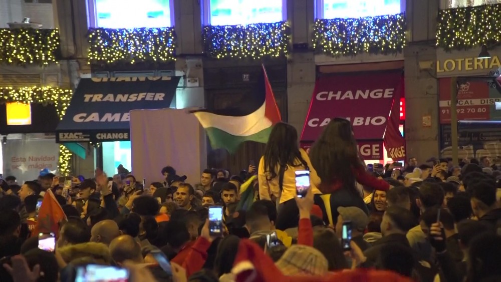 Hundreds of Morocco fans celebrated on the streets of central Madrid Saturday after the north African squad qualified for the semi-finals of the soccer World Cup. Morocco's victory means that Africa finally has a team in the World Cup semifinals, and so does the Arab world.