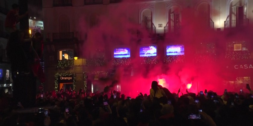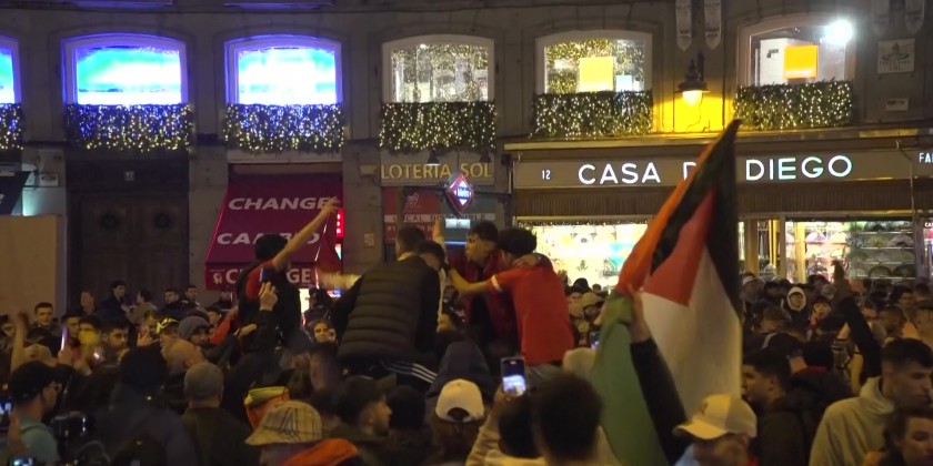 Fans young and old cheered on Puerta de Sol square in the Spanish capital, following Morocco's victory over Portugal 1-0. Morocco delivered a seminal moment in the nearly 100-year history of soccer’s biggest tournament, beating Portugal team 1-0 Saturday in another shocking result in the first World Cup staged in the Middle East.